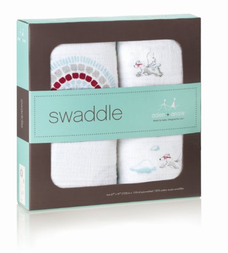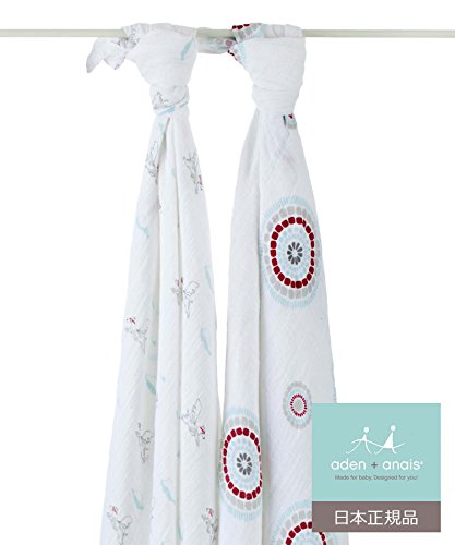aden + anais (エイデンアンドアネイ) 【日本正規品】 モスリンコットン おくるみ 2枚セット liam the brave 2 pack - flying dogs + medallions -4028