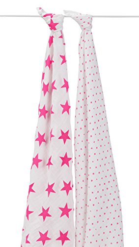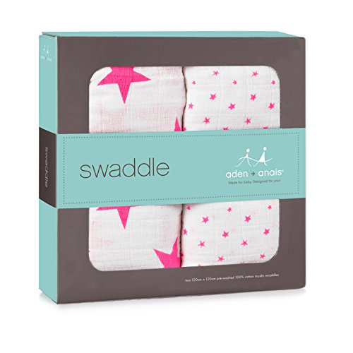 aden + anais (エイデンアンドアネイ) 【日本正規品】 モスリンコットン おくるみ 2枚セット fluro pink swaddle 2 pack-4029
