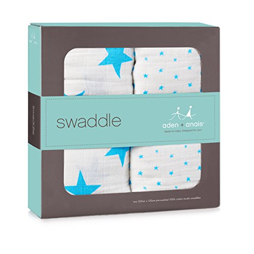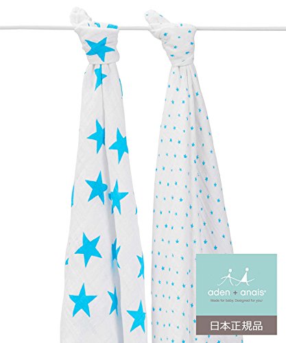 aden + anais (エイデンアンドアネイ) 【日本正規品】 モスリンコットン おくるみ 2枚セット fluro blue swaddle 2 pack-4030