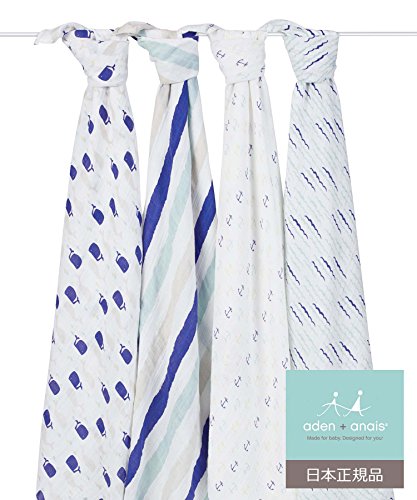 aden + anais (エイデンアンドアネイ) 【日本正規品】 モスリンコットン おくるみ 4枚セット high seas swaddle 4 pack-2055