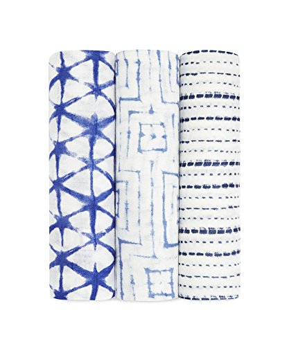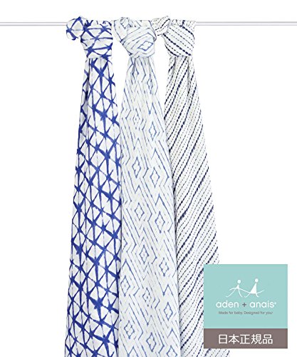 aden + anais (エイデンアンドアネイ) 【日本正規品】バンブーおくるみ 3枚セット indigo bamboo swaddles-9213
