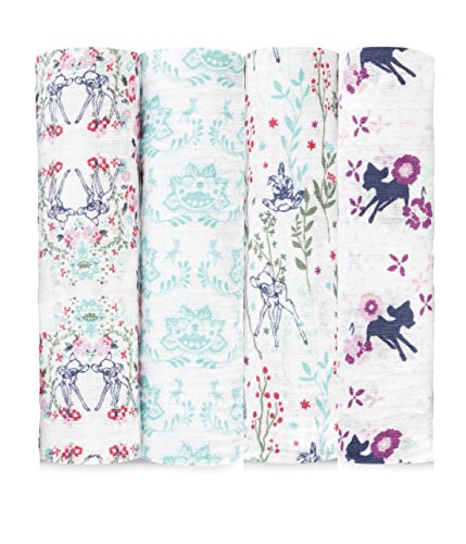 Aden + Anais (エイデンアンドアネイ) 【日本正規品】モスリンコットン おくるみ 4枚セット ディズニー バンビ 4-pack swaddles-DISN102J