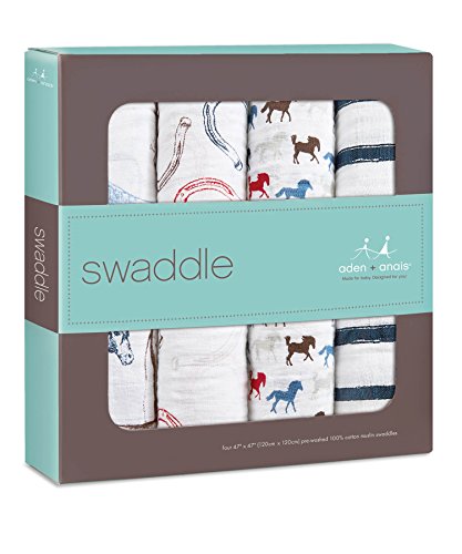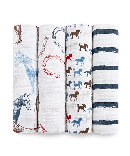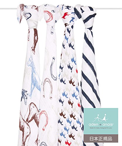 Aden + Anais (エイデンアンドアネイ) 【日本正規品】モスリンコットン おくるみ 4枚セット(ワイルドホーシーズ) 4pack swaddles (wild horses) 2063