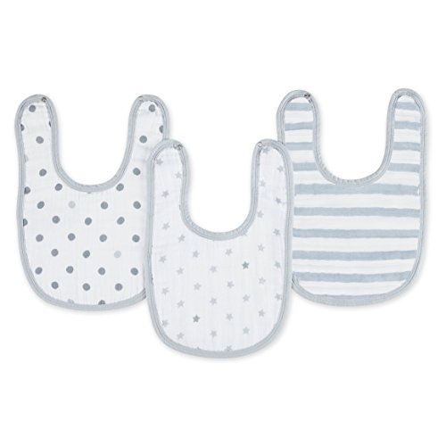 3 pre-washed 100% cotton muslin bibs;simple snap closure makes it easy to take on and off;practical, durable, and machine washable;stays soft wash after wash