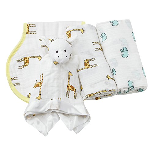 スワドル(2枚)・バーブクロス(1枚)・アニマルミニブランケット(1枚パック)が入っているので、お祝いの贈り物に最適です!