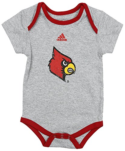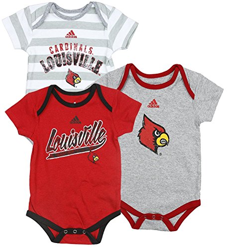 University of Louisville Cardinals NCAAユニセックスBaby Infant Lilファン3ピースボディスーツセット、レッド – グレー – ホワイトグレーストライプ