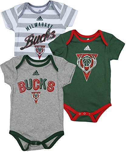 共有がチームを小さなお子様への愛をこのMilwaukee Bucks 3ピースのボディスーツセット。セットには、3つの異なる愛らしいクリーパー。NBAの公式ライセンス商品。赤ちゃんサイズです。