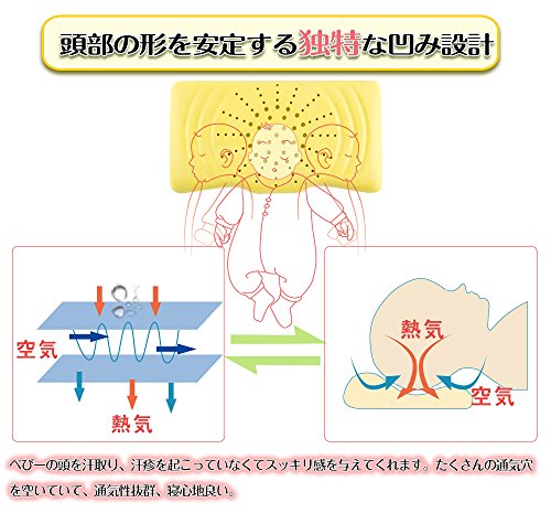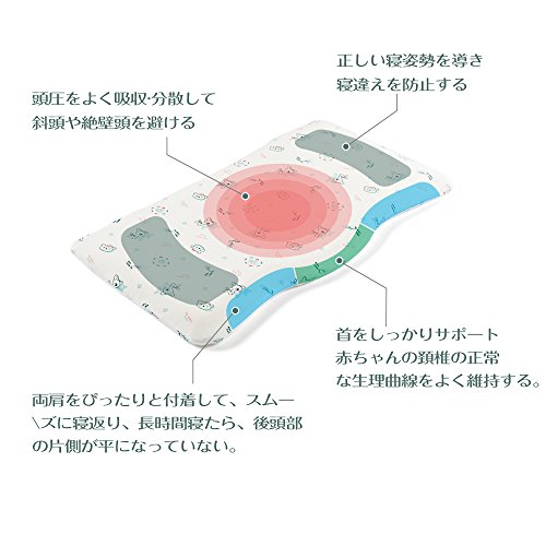 - 赤ちゃんの頭のかたちを良くするお手伝いをする枕です。中身には通気性に優れ、へたりにくく、ホコリも出にくい清潔カバーを採用しました。中央のくぼみのおかげで赤ちゃんの頭が落ちにくい!