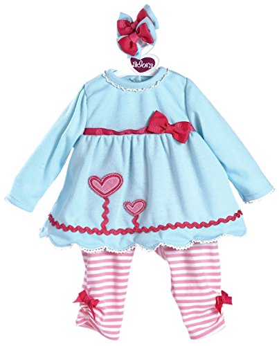 - Comes complete with baby pink striped leggings, turquoise knit tunic top with fun 'blooming hearts' design!