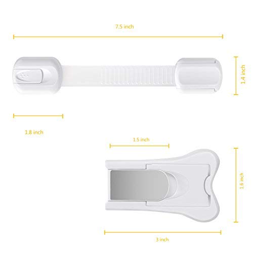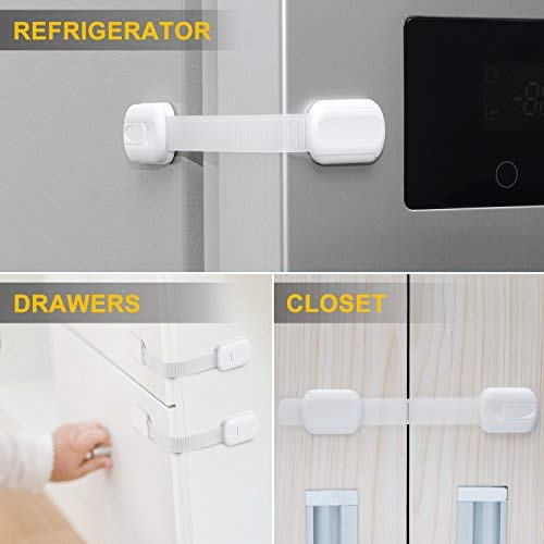 Adoric 8パックベビー校正ロック – 6パック子安全ロックキャビネット、引き出し、アプライアンス、トイレシート、冷蔵庫調節可能なストラップ付きラッチ、Plus 2パックスライドドア食器棚ロックfor Free