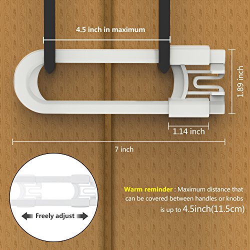 Adoric 8パック赤ちゃんの安全ロックキャビネット、U型スライド式キャビネットロック、Childproofキャビネットラッチのキッチン、ノブ、ハンドル(ホワイト)