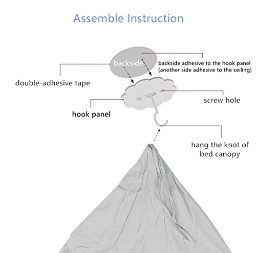 - 梱包内容: 1 xベッドキャノピー, 1 x double-adhesiveテープ, 1 xフック・パネル、1 xスチールリング、2 Xネジ、組み立ては簡単です。天井の高さに注意し、ベッドの天蓋は、95インチ