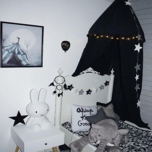adyonlineラウンドドームKidsインドアアウトドア城再生テント、子供のプリンセスベッドキャノピー、Mosquito Netベビーベッド、Hanging家装飾Reading Nookコットンキャンバス高さ240 cm / 94.9インチ Hight:95inch ブラック