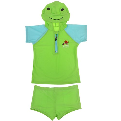 商品名:水着 キッズ 男の子 スイムウェア スイムパンツ 2点セット セパレート 半袖パーカー 帽子付き 動物フード かわいい 水着用パンツ 保育園 幼稚園 海水浴 ボーイズ 100/110/120/130サイズ グリーン