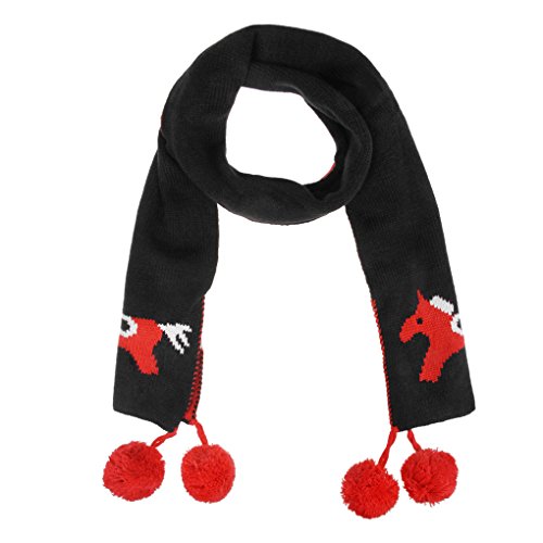 キッズ ニットマフラー ネックウォーマー ウマさん 動物柄 ボンボン付き 可愛い スキー小物 防寒グッズ クリスマス 誕生日 プレゼント お出かけ 男の子 女の子 4カラー