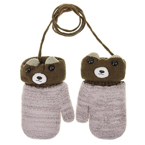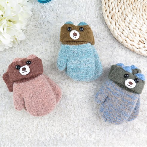 キッズ ベビーグローブ 手袋 紐付き ミトン型 クマさん 厚手 保温 防寒 1-5歳 かわいい スキーウエア 雪遊び おでかけ 通園 男の子 女の子 秋冬 5色