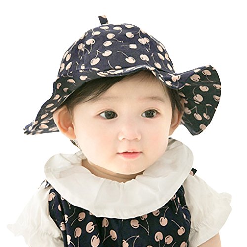 とんがり帽子 ベビーキャップ チェリー柄 綿 カジュアル 可愛い ベビー帽子 チューリップハット 日焼け防止 赤ちゃん 女の子 女児 夏用 出産お祝い 46㎝-48cm 6-12カ月 ピンク ネービーブルー