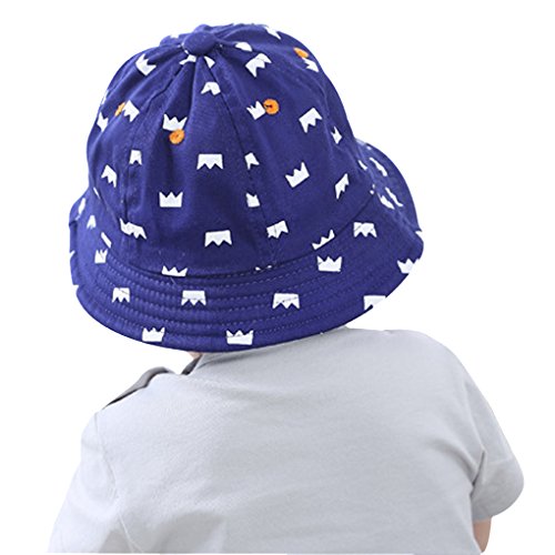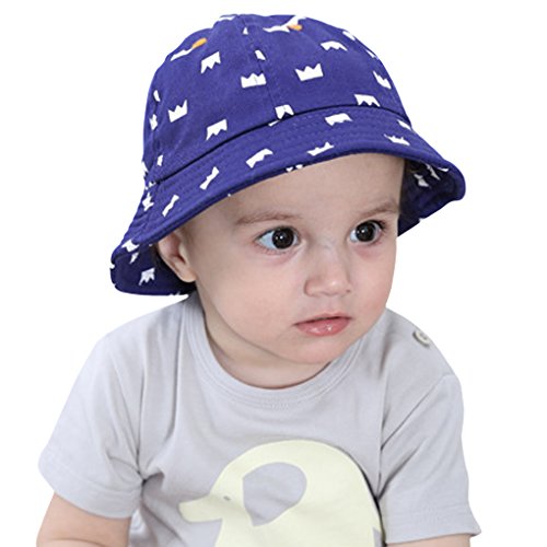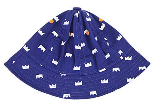 ベビー帽子 ハット ベビーキャップ 綿 クラウン柄 つば広 カジュアル かわいい バケットハット ひも付き 紫外線 日焼け防止 女児 男児 夏用 ギフト プレゼント ネービーブルー