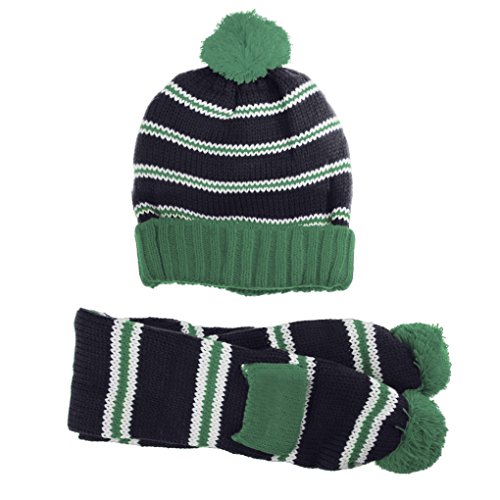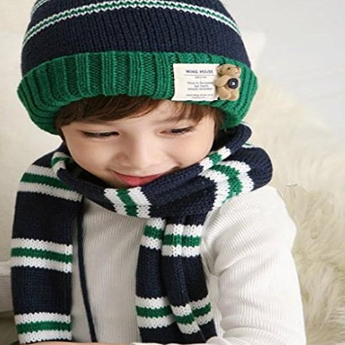 ニット帽子+マフラー 2点セット ネックウォーマー 子供帽子 2-6歳 ストライプ柄 あったか ボンボン付き かわいい 防寒アイテム 防寒対策 雪遊び お出かけ 通学 ギフトに最適 キッズ 男の子 女の子 秋冬 3色