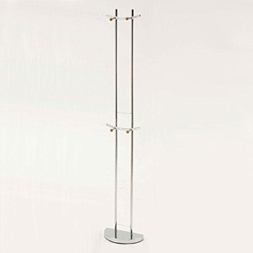 製造国:台湾 素材・材質:スチールパイプ、天然木 商品サイズ:約W32.5×D17.5×H179cm 重量:約4800g 仕様:組立式仕上:クロムメッキ、ラッカー塗装耐荷重:上部1フックにつき約500g、下部1フックにつき約1kg