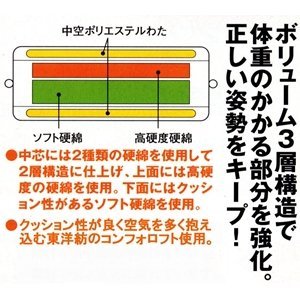 - 【出荷目安】:1 - 8営業日 ※土日・祝除く 【同梱区分】:TS 1424 【梱包サイズ】:大型商品 ●しっかりした敷布団で眠りたい方におすすめ ●高硬度面とソフト面のリバーシブル ●安心の日本製 睡眠時、柔らか過ぎる敷ふとんでは 身体がくの字に沈み込み腰に負担がかかります。 この敷布団は上面に高硬度の硬わた使用し、 眠りながらもしっかり身体を支えて背筋を伸ばし正しい姿勢で眠れます。 また、下面にはクッション性がありながら しっかり身体を受け止めてくれるソフト硬わた素材を使用しており、 両面の硬さが違うのでその日の体調や好みに合せて使い分けできます。 中綿には空気を多く含み、かさ高のある清潔な中空ポリエステルを使用。 3層構造だからボリュームがあり、ふとん内部も通気性がよく 湿気を溜め込みにくく寝心地も快適です。 【商品名】 背筋すっきり3層敷き布団 シングルブルー 【サイズ】 約100×210cm 【材質】 側地:綿100% 中綿:ポリエステル100%、約2.0kg 中芯:40mm硬綿100%(ソフト硬わた1 …★以降詳細は【商品の説明】文面をご参照下さいませ★