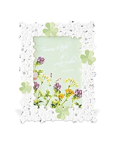 ラッキーモチーフとして人気のクローバーがにぎやかに散りばめられたフォトフレーム。