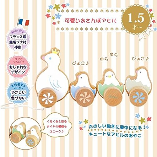 - 紐を引っ張ると、赤ちゃんアヒルがぴょこぴょことそれぞれ違う動きをしながらお母さんアヒルについていきます。タイヤの軸位置をずらしているので目にも楽しいユニークな動き!!くるくる回るタイヤの模様や、表情豊かなアヒル達がとってもキュートです。 製造国:ベトナム 素材・材質:木(フランス産ブナ材)、コットン 商品サイズ:本体:W240×D60×H125mm、全長485mm(紐含む) 仕様:対象年齢:1.5才以上STマーク取得品ベビーギフトボックス入 さらに詳細はページ下部をご確認ください。