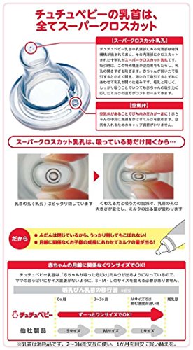 チュチュベビーの乳首は「ママのおっぱい」がお手本♪ママのおっぱいのように「赤ちゃんが吸った分だけ」ミルクが出るようになっていますので、S・M・Lのサイズを月齢に応じて変える必要がありません。