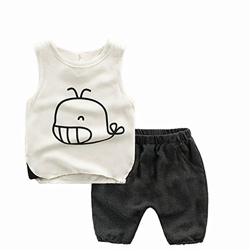 AiGo ベビー 服 子供服 キッズ 上下セット シャツ tシャツ ショートパンツ 可愛い 男女兼用 綿麻 ベビー キッズ ランニング 女の子 男の子 [並行輸入品]