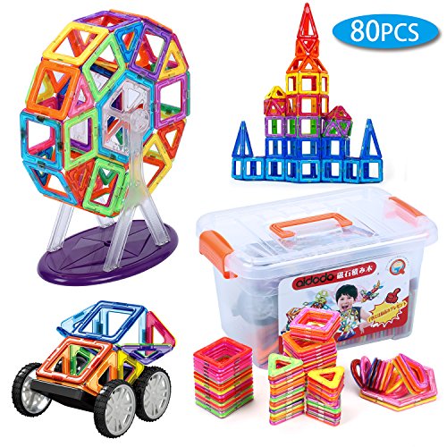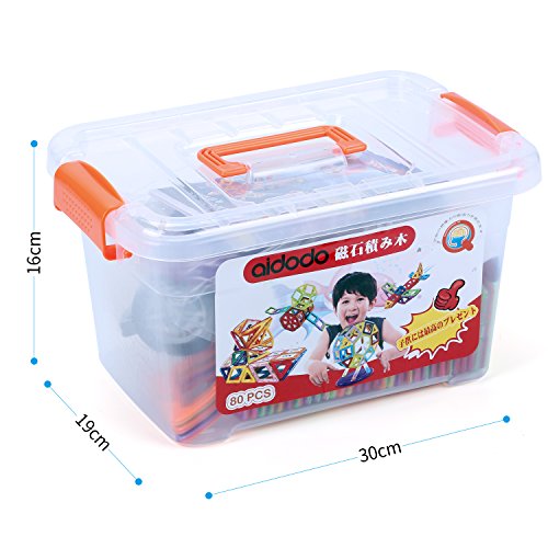 Aidodo 磁石ブロック マグネット立体パズル 積み木 子供おもちゃ 知育学習玩具 想像力創造力を育てる 赤ちゃん DIY 知育おもちゃ キッズ 磁石 パズル ブロック プレゼント ギフト(80ピース 収納ボックス付き)