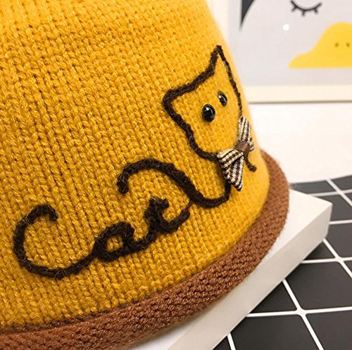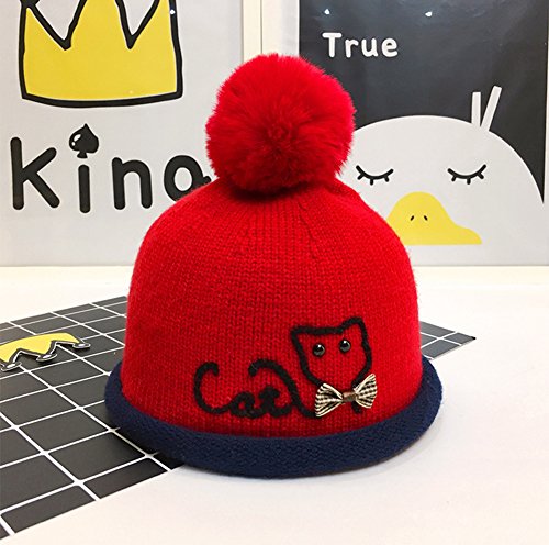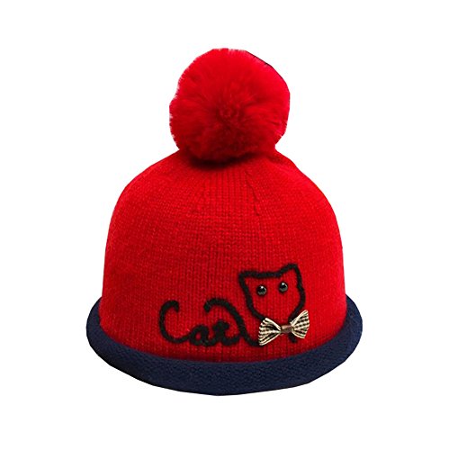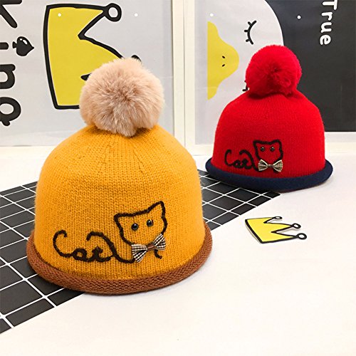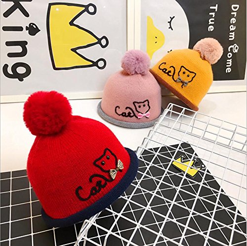 - 可愛い猫の刺繍とポンポン付きで子供らしいニット帽です。