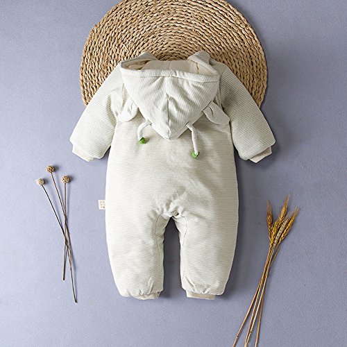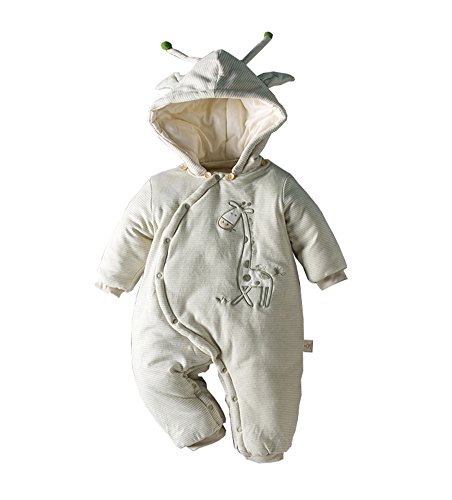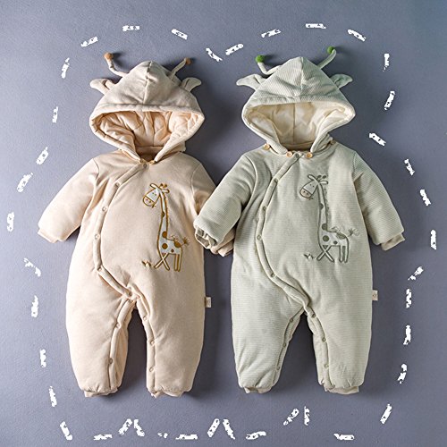Ainial ロンパース ベビー 長袖 前開き 中綿 厚手 暖かい 秋冬 防寒対策 カバーオール 赤ちゃん フード付き 可愛い キリンの刺繍 ボディスーツ 新生児 保温 オールインワン 男女兼用 出産祝い プレゼント