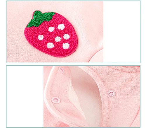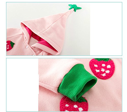 Ainial ロンパース ベビー 長袖 女の子 春秋 前開き カバーオール 赤ちゃん 新生児 フード付き 可愛い いちごの柄 ボディースーツ パーカー 柔らかい 防寒 着ぐるみ ルームウェア 出産祝い プレゼント