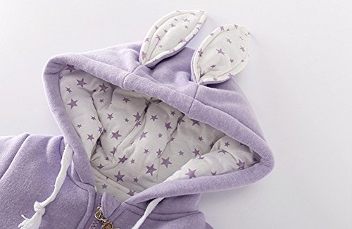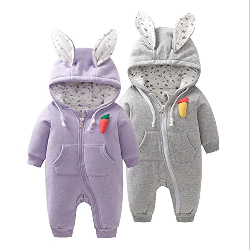 - フロントにファスナー付きで、首元から足元まで開閉で、着脱やすいです。可愛いウサギの耳付きで女の子にも男の子にもぴったりです。中綿の厚手タイプは冬に重宝します。出産祝いや百日祝いのプレゼントにもお勧めします。