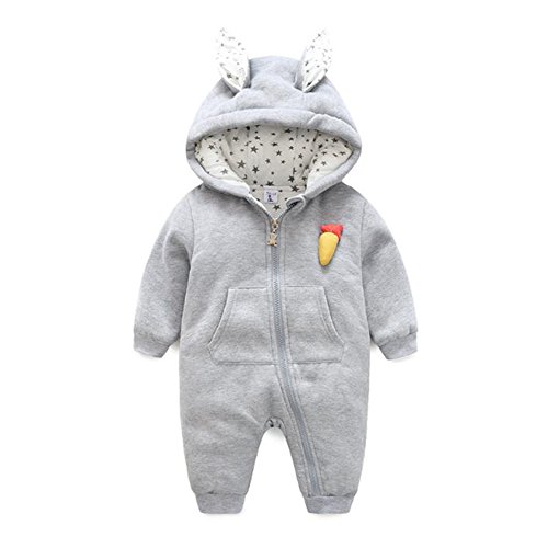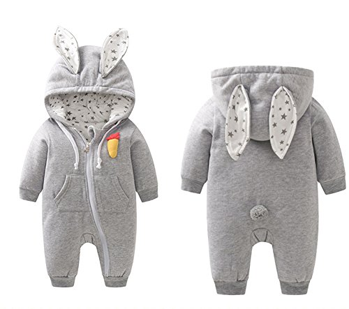 Ainial ロンパース ベビー 冬 厚手 アウター 女の子 男の子 長袖 フード付き カバーオール 前開き 赤ちゃん 新生児 可愛い ウサギの耳付き ジャンプスーツ 中綿 防寒 保温 コート ボディスーツ 満月 出産祝い ギフト