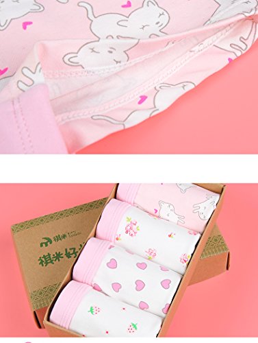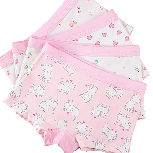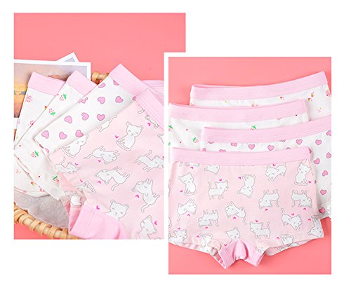 Ainial ショーツ キッズ 女の子 下着 日変わり パンツ 子供用 ガールズ 可愛い 女児用 ボクサーパンツ トランクス インナー 肌着 コットン ハート 花柄 いちご 猫 4枚セット 120-175cm