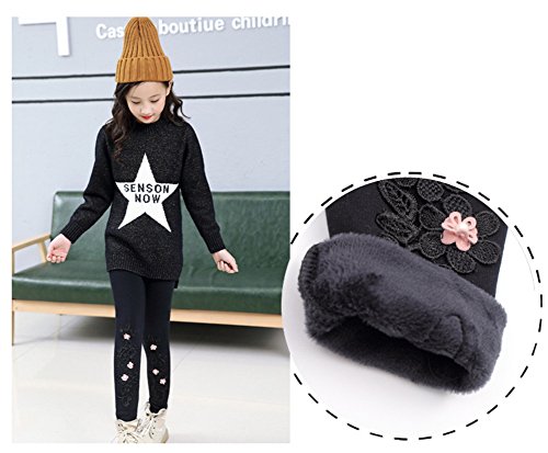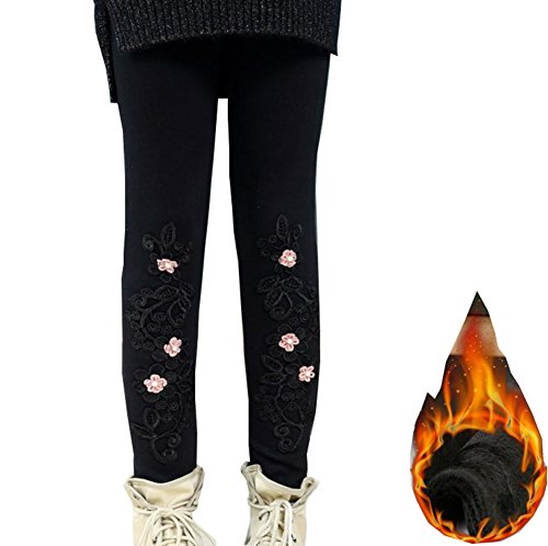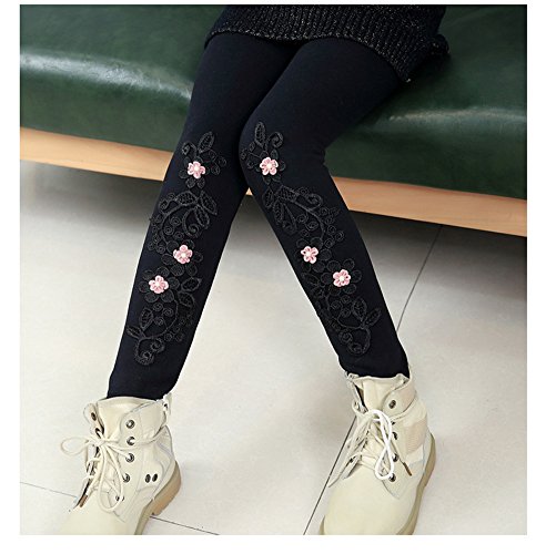 Ainial レギンス キッズ 女の子 秋冬 裏起毛 スパッツ ロングパンツ 子供用 ガールズ 厚手 暖かい 防寒対策 長ズボン スキニー ストレッチパンツ 可愛い 花のレース おしゃれ 長パンツ 通園 通学