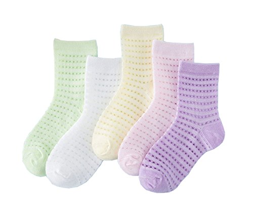 Ainial ソックス ベビー 靴下 新生児 赤ちゃん 春夏 綿 メッシュ 通気性抜群 子供靴下 薄手 女の子 男の子 5色5足セット 1-10歳
