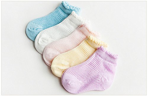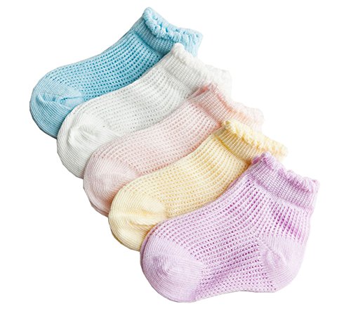 Ainial ソックス キッズ ベビー 男の子 女の子 春夏 メッシュ 通気性抜群 赤ちゃん 新生児 キッズ 子供靴下 綿 柔らかい 可愛い 5色5足セット 0-6歳