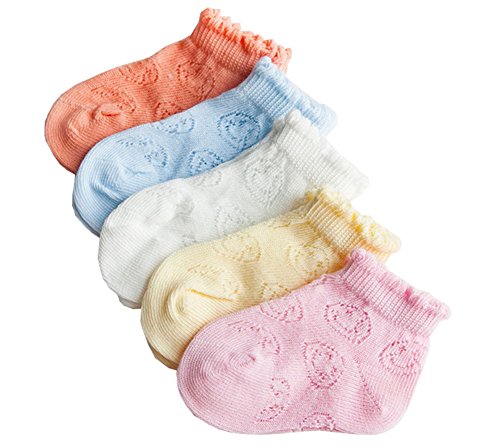 Ainial ソックス キッズ ベビー 男の子 女の子 春夏 メッシュ 通気性抜群 赤ちゃん 新生児 キッズ 子供靴下 綿 柔らかい 可愛い 5色5足セット 0-6歳