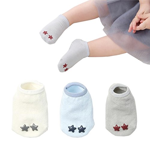Ainial ソックス ベビー 女の子 男の子 春夏 靴下 綿 フットカバー キッズ ガールズ ボーイズ 可愛い 星 ハート 柔らかい 薄手 新生児 赤ちゃん 滑り止め 快適 3足セット