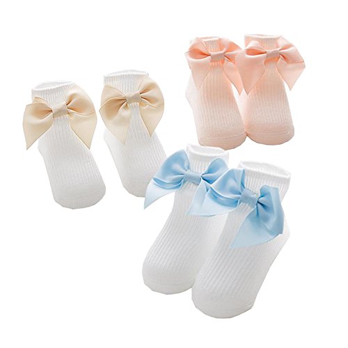 Ainial ソックス ベビー 春秋 靴下 赤ちゃん 子供のソックス 子供靴下 キッズソックス 女の子 ガールズ 可愛い リボン付き コットン 滑り止め 女児 クルーソックス 新生児 幼児用 3足セット 出産祝い プレゼント