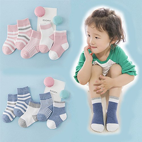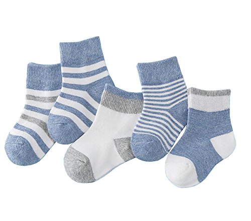 Ainial ソックス ベビー 子供靴下 女の子 男の子 男女兼用 厚手 秋冬 ボーダー柄 配色 可愛い 赤ちゃん 新生児 クルーソックス ガールズ ボーイズ コットン 保温 通気 暖かい ソフト 8色お揃い 0-6歳 5足セット