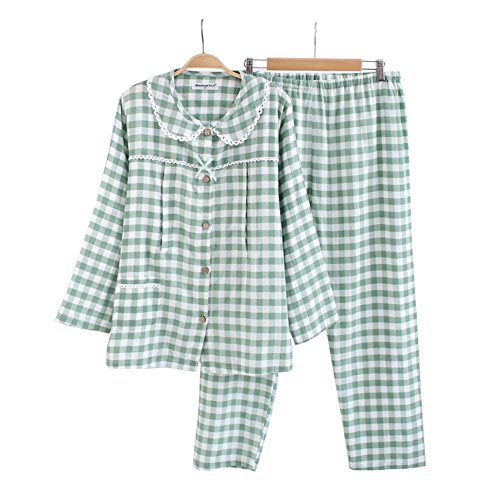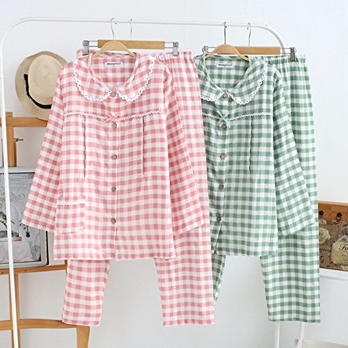 Ainial パジャマ マタニティ レディース 授乳服 ルームウェア 部屋着 授乳口付 上下セット 2点セット 長袖 長パンツ 春夏 ウェスト調節可 前開き チェック柄 コットン 2重ガーゼ 産前 産後 妊娠服 ナイトウェア オールシーズン