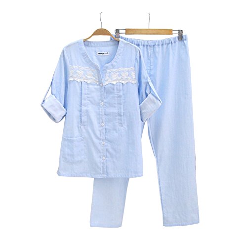 - 綿100%ガーゼマタニティパジャマです。肌に優しく通気性がよく蒸れないです。着心地が抜群!袖丈が調整できるのも嬉しい点です。パンツのウエストも調整できます。授乳口付で産前から産後まで長くお使いいただけます。