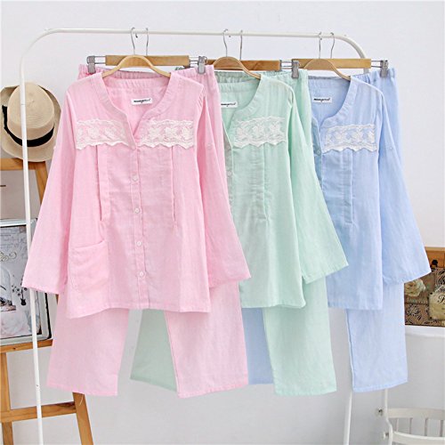 Ainial マタニティ パジャマ レディース ルームウェア 前開き 授乳口付き 授乳服 上下セット コットン 2重ガーゼ おしゃれ レース切り替え 妊婦服 産前 産後 長袖 袖丈調節可 ロングパンツ 2点セット 春夏 部屋着 ナイトウェア 寝間着