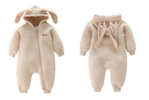 Ainial ロンパース ベビー 男の子 女の子 厚手 秋冬 新生児 カバーオール 前開き フード付き 可愛い ウサギの耳 オーガニックコットン ボディースーツ ルームウェア お出かけ 防寒