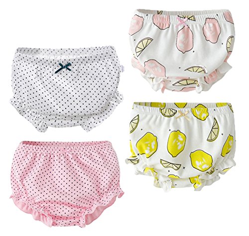 Ainial ショーツ キッズ ガールズ パンツ 下着 子供用 女の子 ブリーフ 可愛い リボン フリル ドット柄 レモンプリント インナー 綿 肌着 女児 ブリーフショーツ 2枚セット&4枚セット