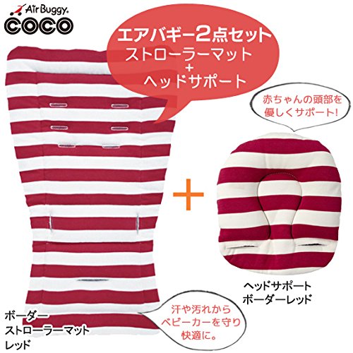 エアバギー AirBuggy ストローラーマット+ヘッドサポート セット ボーダーレッド