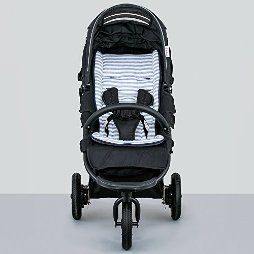 - 吸水速乾性と通気性に優れたCOOLMAX素材を表面に、滑りにくくズレにくいナノフロント素材を裏面に使用しているためベビーカーにフィットします。